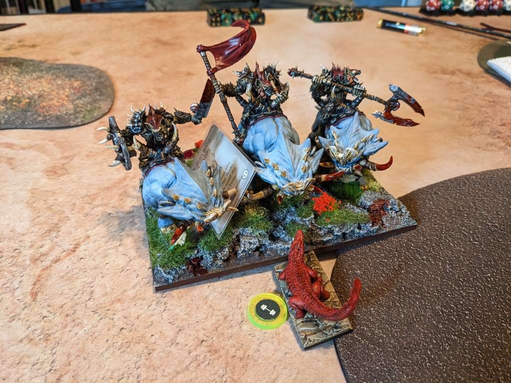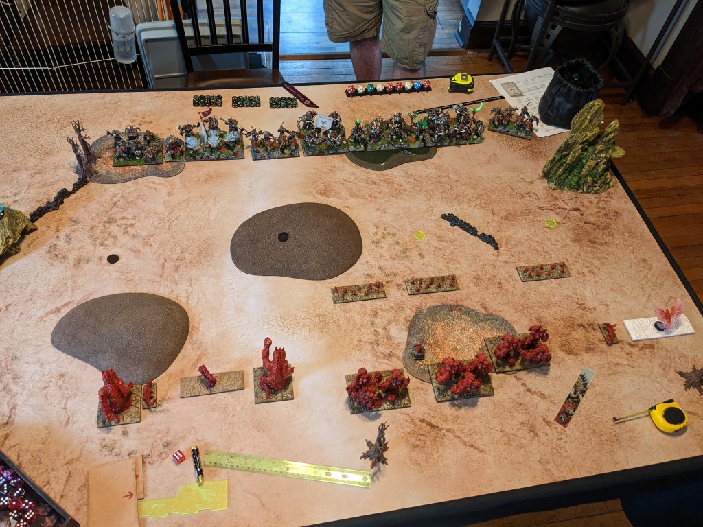 The recent buffs to the Slasher have me very excited, especially since I was already going to include them before they got US2 😉 Tox bolts is a ridiculous upgrade solidly in my wheelhouse, and you’ve already seen me messing with host firebeast and Raptor Lords. My list building habits have changed a bit since I started Bloodfire in 2E, along with the meta I reckon, as thick chaff have become a popular and rewarding way to play the game. This first game sees me trying out 2x Fire regiments for the first time. Minor spoilers, I wasn’t quite sure what to do with them! Woefully slow, not particularly tough, and not particularly fighty unless they can grab a flank. But five regiments to get in the way and/or play scenario is a better feel than yet another fire horde.